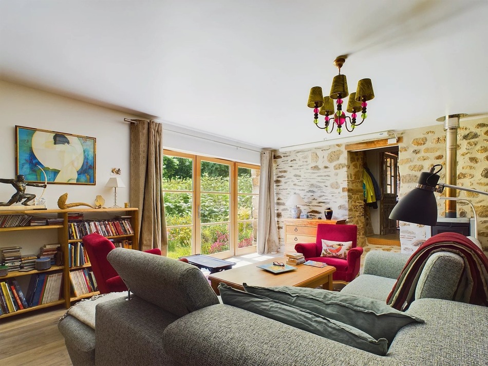 A lovely elevated position for this nicely renovated stone cottage. The ground floor comprises an open plan kitchen, dining/living room with lots of character - stone walls, beams and wood floor - and a log burner. The attached barn has recently been converted to provide a gorgeous double height living room with patio doors, a practical laundry room and a modern shower room. This area could become a ground level access bedroom or even a studio.