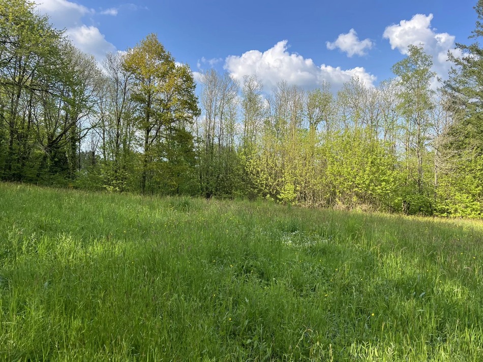 The land around the house is mostly grass and woodland with views over the neighbour's lake.