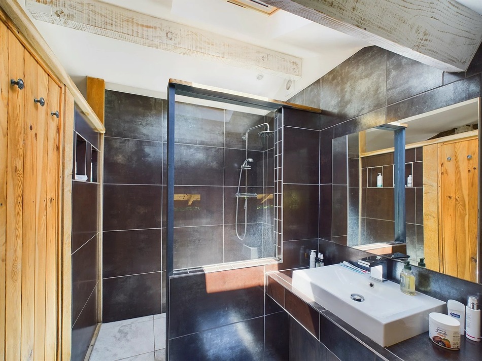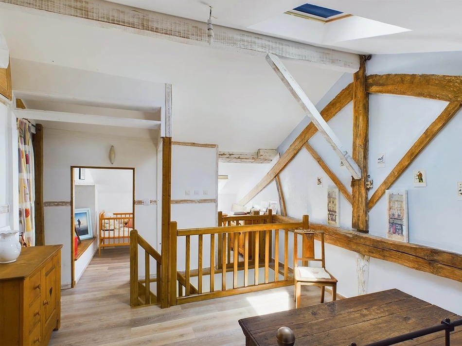 The attached barn has a mezzanine offering plenty of additional storage space, and there is a log store adjoining the house at the other side.