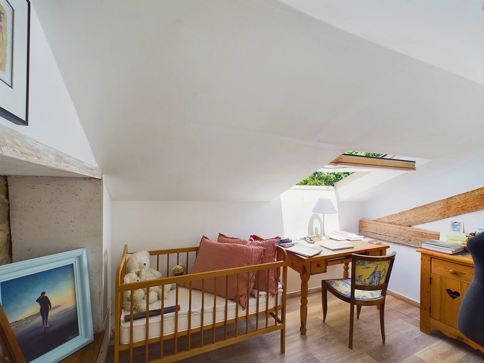 A recently installed staircase leads to a mezzanine area with an office area on one side of the staircase and a bedroom on the other side. A corridor with WC leads to the large main bedroom which has its own generously sized en suite shower room. The original staircase leading from the kitchen/diner is in the middle of the house.