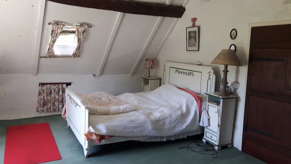Tastefully renovated in keeping with traditional features, the ground floor comprises a large living room with terracotta floor tiles, exposed beams and fireplace, a kitchen, a bedroom and a shower room with WC. Upstairs is a bedroom and a large attic room.