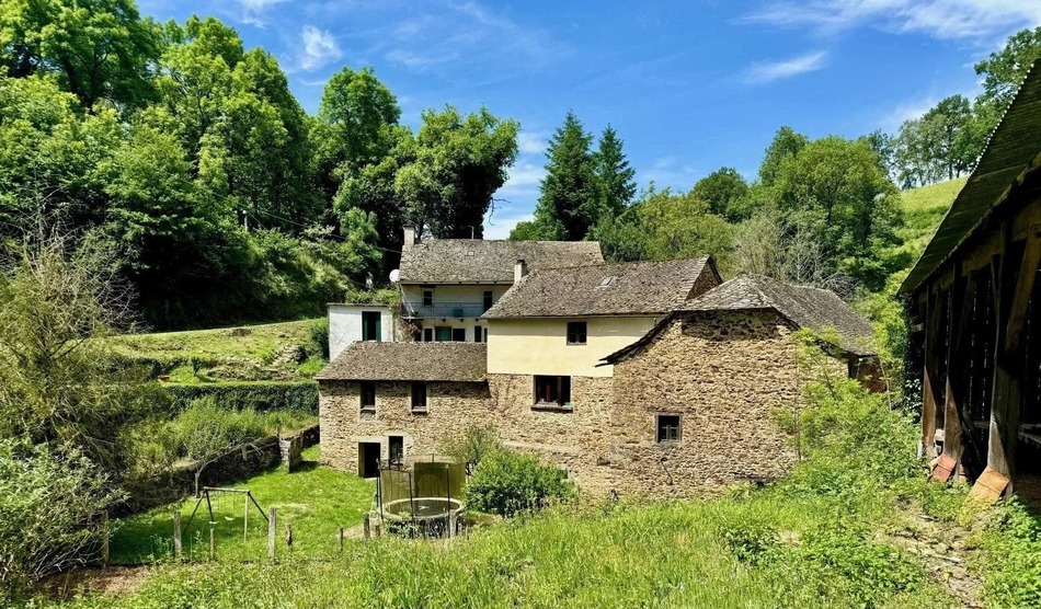 EXCLUSIVE TO ! Set in the Aveyron countryside, just minutes from Rieupeyroux, this estate includes a stone house, a house converted from an old mill, several barns, and over 10 hectares of land with river frontage and a private waterfall. A rare opportunity to create a bespoke countryside retreat with character, privacy, and development potential. The property is ripe for renovation and modernisation, offering a chance to design a home tailored to your vision.