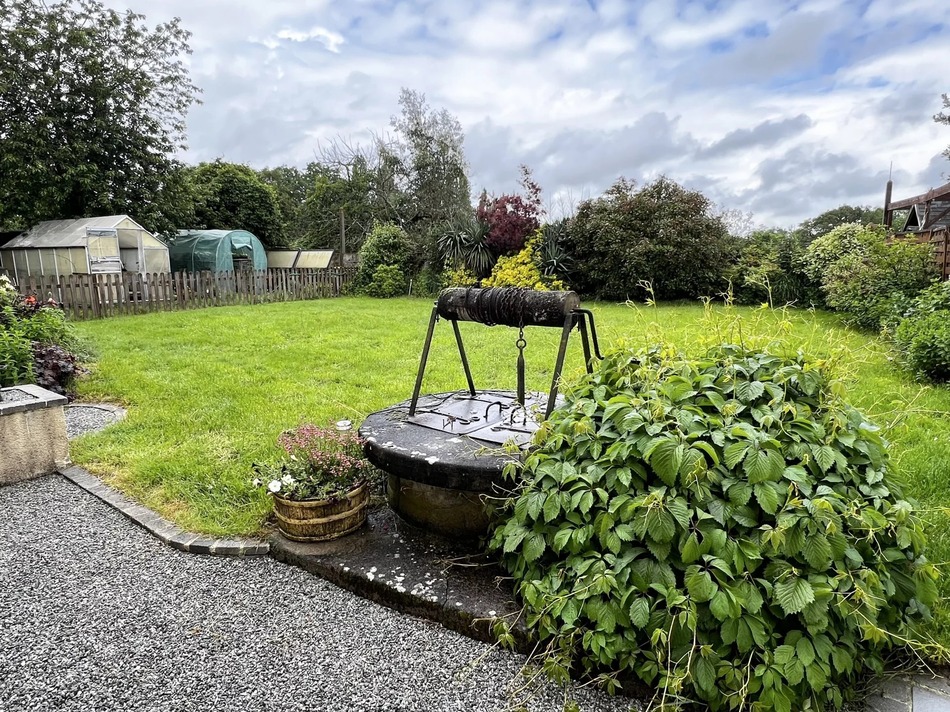 The outside is a dream, lovely lawned main garden with terrace and a well and has lovely views across fields to the back.