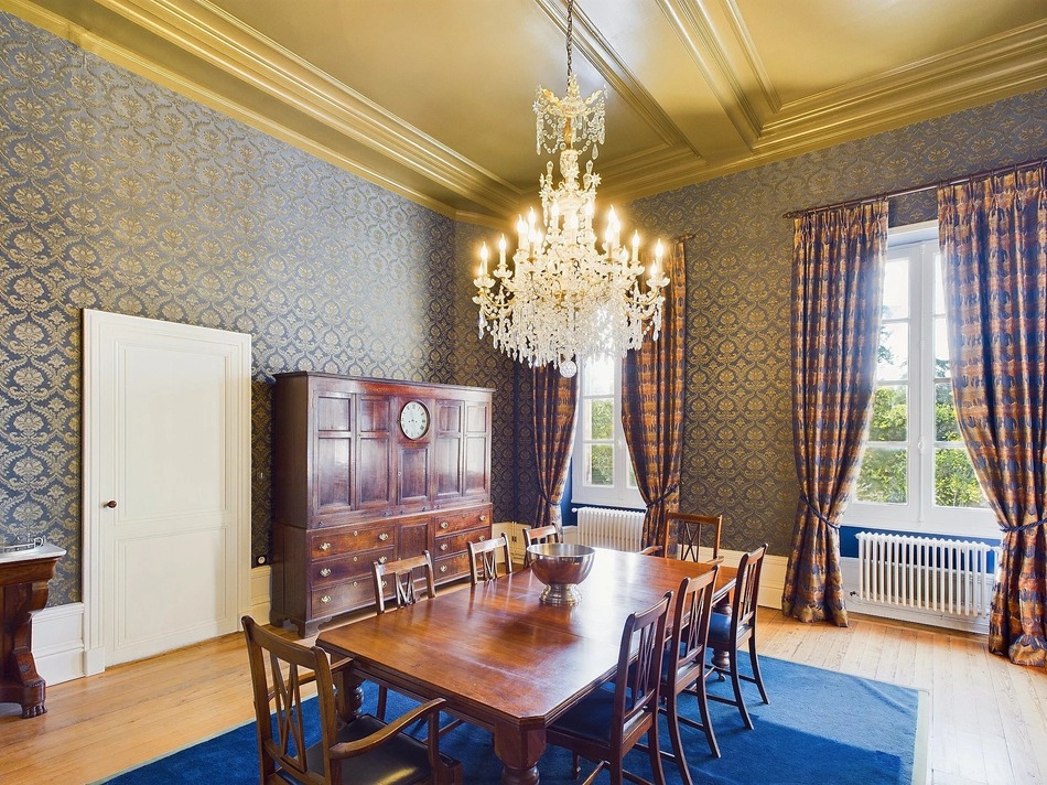 The chateau itself offers a remarkable total area of 825 m², showcasing high-standard finishes and in excellent condition throughout. With a south-facing orientation, you can bask in panoramic views over parkland, woodland and your own lake. This property is equipped with modern amenities, including a stunning newly fitted kitchen, luxurious bathrooms and a state-of-the-art wood pellet heating system.