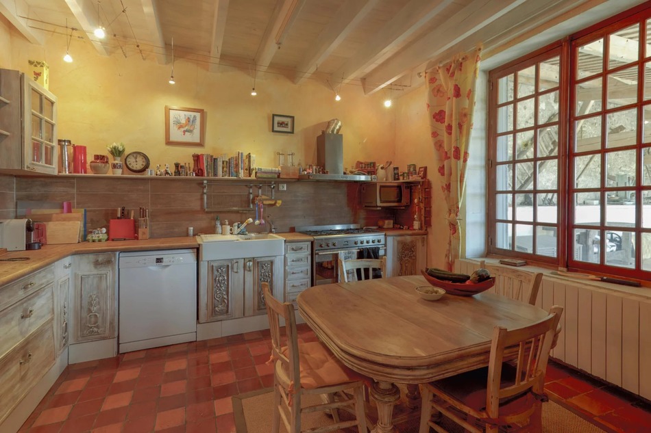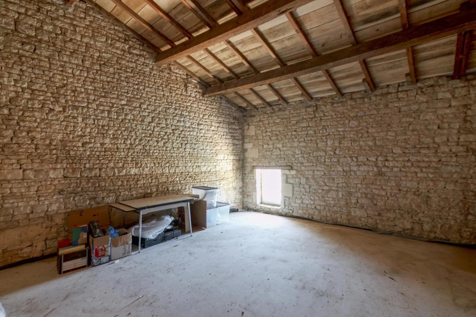 Outside, the manageable garden features a swimming pool, beautiful mature trees, separate wood store and garden shed, a well and fine views. A large covered terrace with barbecue area encourages long and lazy afternoons and delightful al-fresco dining! To one side of the main house is a part-restored two-storey house with separate street entrance, now used for storage and workshop. Just across the road is a substantial barn providing copious storage and parking for 2 - 3 vehicles.