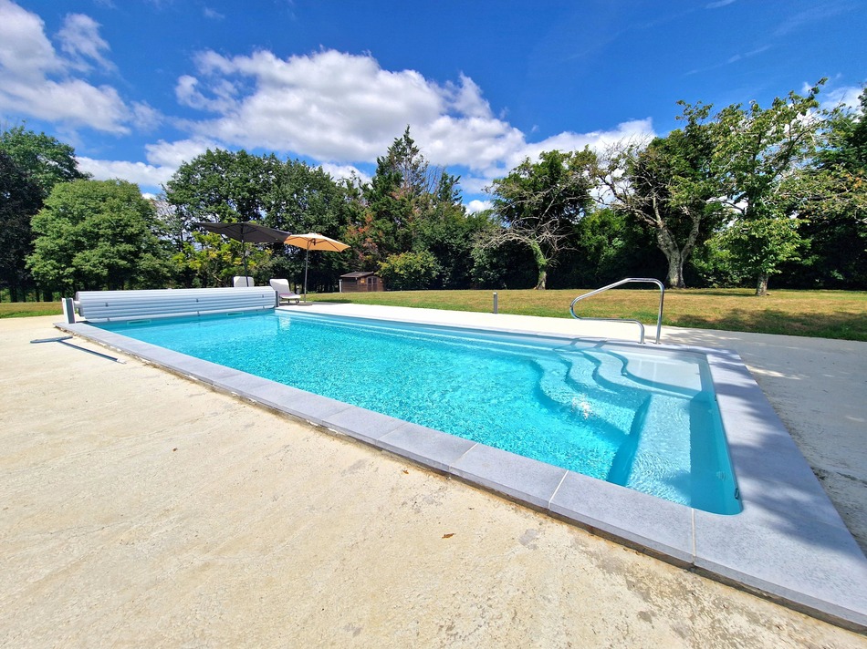 An attractive covered terrace, looks out across the spacious open terrace to the recently installed 10m x 5m pool with an electric cover. An independent modern shed houses the pool equipment and 2 further sheds offer further storage for garden furniture and equipment.
