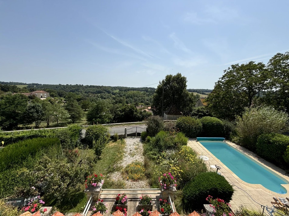 Outside the property the view has to be seen to be believed! There is a very pretty garden to the front with gated access from the quiet lane leading onto the courtyard and the garage. Set in the pretty garden there is an inground swimming pool and a small outbuilding.