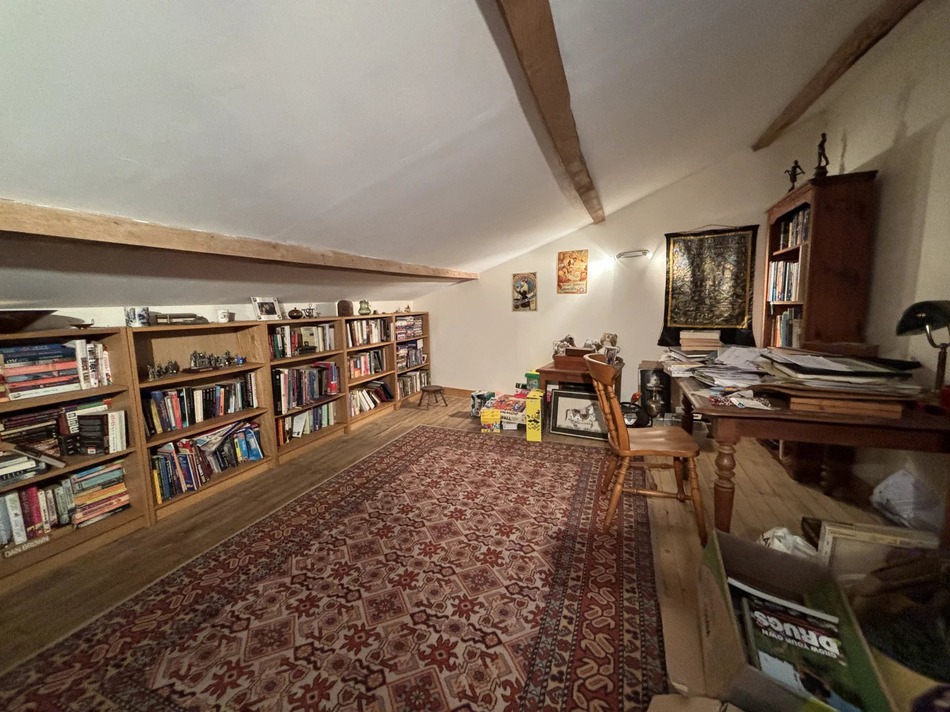There are two staircases (one from the central hallway and one from the kitchen) leading up to a fantastic master suite with plenty of storage and a large ensuite bathroom with bath, shower and WC. There is also a room currently used an office/library and a mezzanine area on this floor.