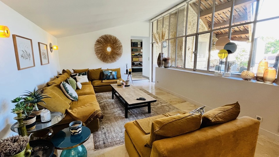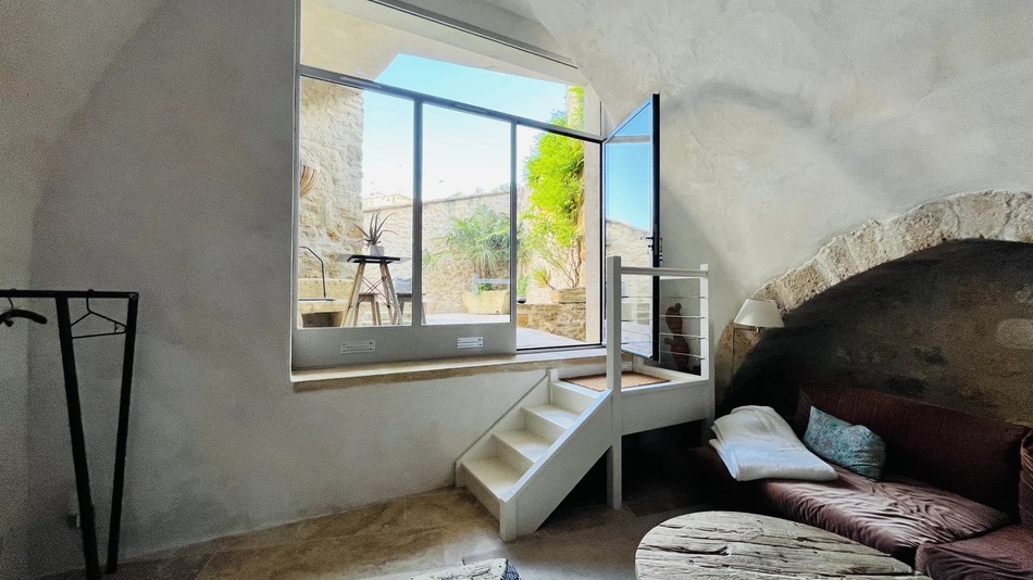 In the heart of the village of Rognes, magnificent stone house dating from 1800, with panoramic views of the surrounding hills and the church tower.