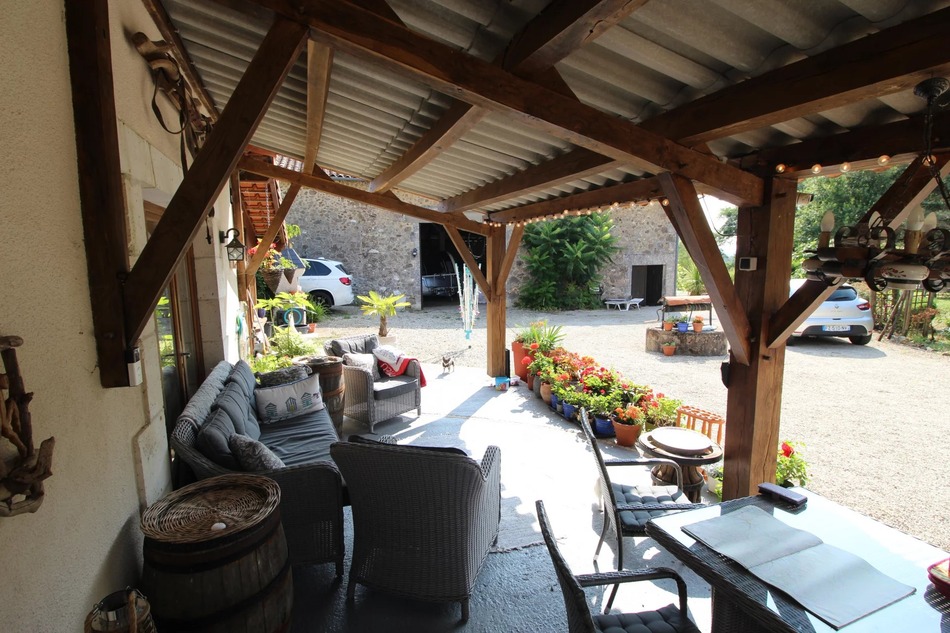 Outside there is a large barn and ample parking - covered eating terrace directly from the kitchen and pool with terrace surround good size garden with lovely views over the valley.