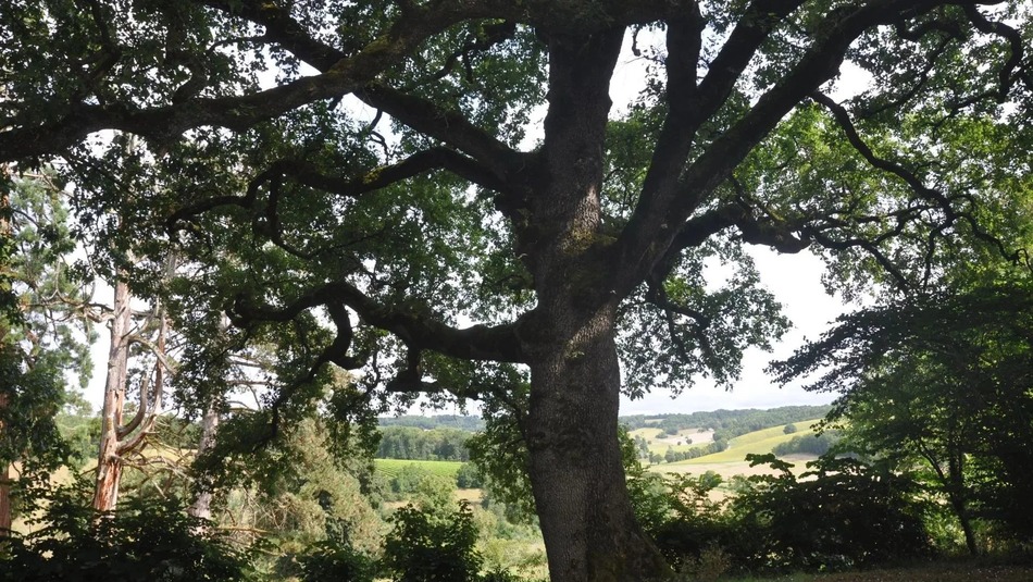 In the grounds behind the house are some fine specimen trees - magnolia, oak, cedar - with distant views over the countryside.