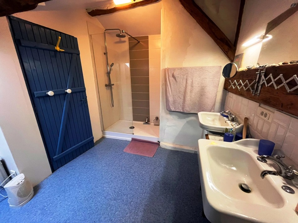 The ground floor features a charming entrance hall, a spacious kitchen/diner with a log burner and access to a fabulous orangery, as well as an equally large salon, also with a log burner. A beautiful, original wooden staircase leads to the first floor, which includes three bedrooms, one of which has an en-suite bathroom. The second floor offers a fourth bedroom with its own bathroom, along with some additional storage space. Attached to the house is a large garage of approximately 80m², with an adjacent storage room and a mezzanine. A separate annex, currently used as a yoga studio, could potentially serve as a small guest house (possible gite business - subject to necessary permissions).