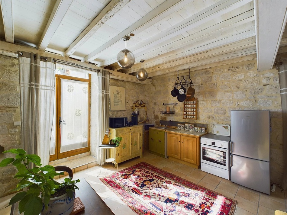 On the ground floor, the house comprises a living room with wood burner, a large, recently refurbished kitchen, a shower room and WC. On this level, there is also access to the former second house and its living room with open plan kitchen, which has an independent access. Upstairs, a second lounge offers a cosy space with a wood-burning stove. There is also a lovely bedroom with dressing room, a WC and another bedroom attached to the former second house.