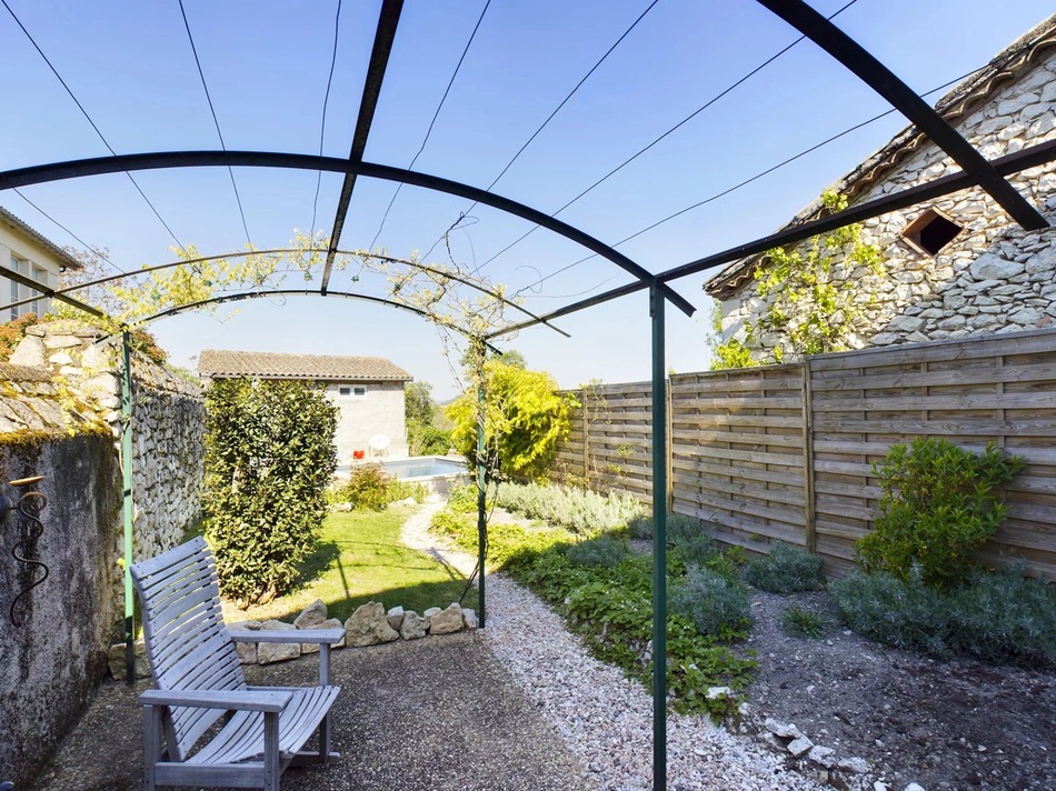 Just accross the lane is a magnificent garden with heated swimming pool and breathtaking views. There is also a garage, 2 cellars and 2 attics.