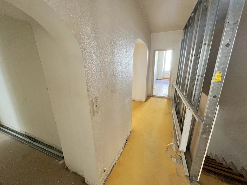 The spacious apartment (approx 210m2) needs renovating, and currently features a private entrance, a generous living room, kitchen, three bedrooms, a bathroom + shower room, and separate lavatory. A spacious attic offer further development potential (subject to permissions).