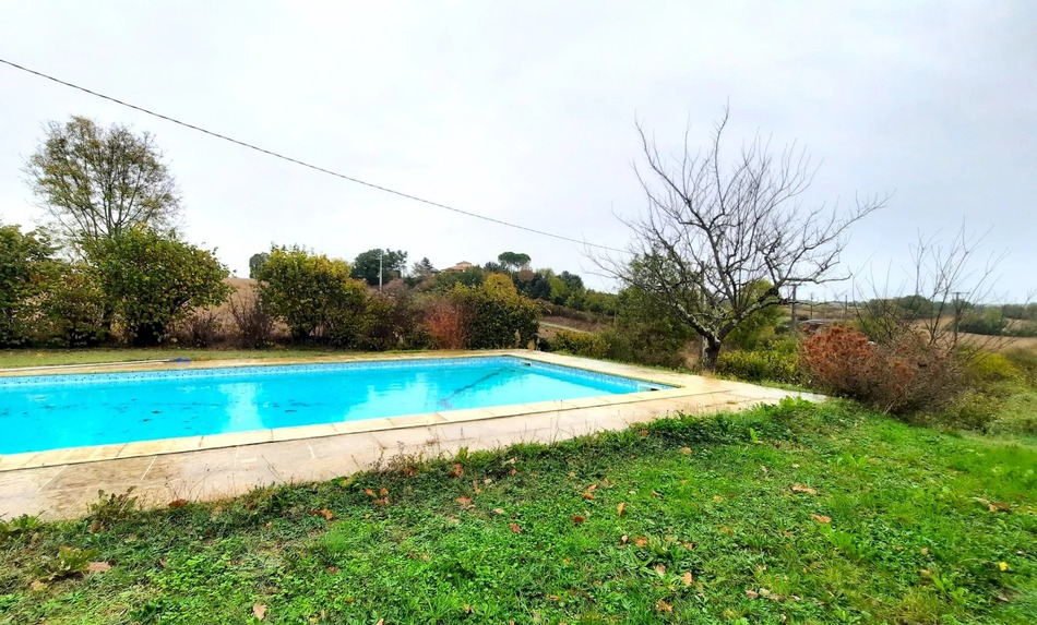 EXCLUSIVE TO ! In the heart of the Lot-et-Garonne countryside, come and discover this lovely property set in a large garden. The single-storey house comprises a large living room with open-plan kitchen opening onto a lovely covered terrace. There are also 2 bedrooms and a bathroom with separate toilet. The house is equipped with a wood-burning stove, a heat pump and double glazing. At the rear of the house is a lovely 10 m x 5 m swimming pool with uninterrupted views over the countryside. An outbuilding houses a garage, a workshop and a one-bedroom guest house with living room and shower room, ideal for welcoming guests (possible gite business - subject to necessary permissions). The house is only 10 minutes from the bastide town of Monflanquin and all amenities.