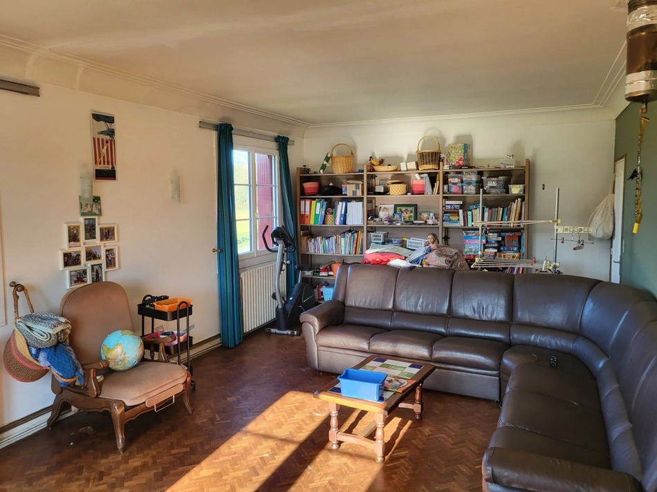 It comprises 2 levels with a large south-facing living room, 5 bedrooms and 2 bathrooms. A three-bedroom flat completes the house.