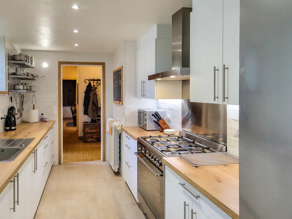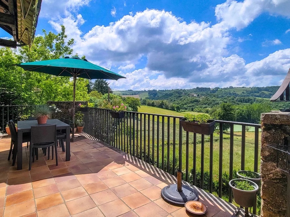 The main house unfolds over three levels and boasts four spacious bedrooms and two bathrooms. A generous 34m² living room features a Jotul log-burning stove in the original stone fireplace, perfect for cosy evenings, while the adjoining dining area opens directly onto a sun-drenched south-facing terrace with access to the garden and sweeping views of the rolling Aveyron countryside. The newly installed kitchen blends seamlessly into the character of the home while offering all modern comforts.