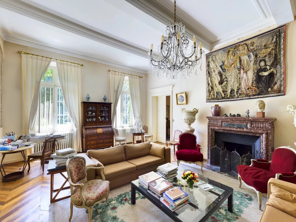 Spacious entertaining spaces: billiards room, two salons, and a fresco-adorned dining room.