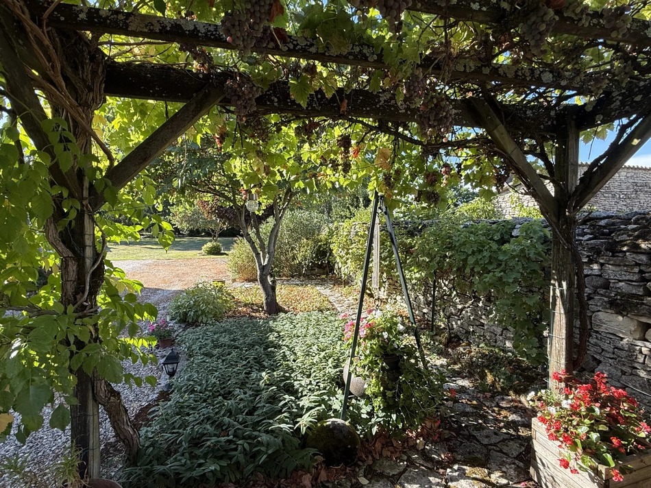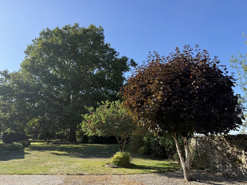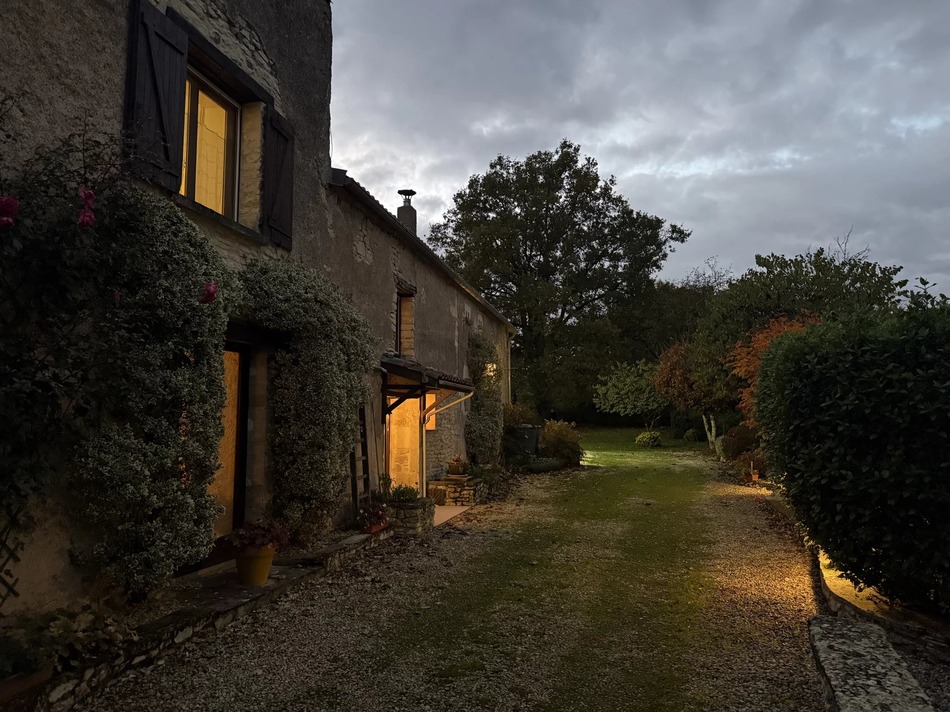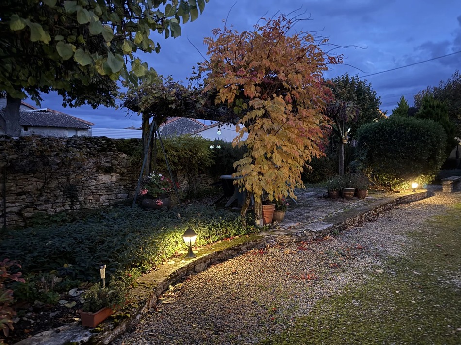 The garden is a true highlight, centered around a magnificent 33-meter oak tree and surrounded by a wealth of walnut and fruit trees, along with various shrubs and bushes. Towards the rear, you'll discover a lovely wooded area. The garden also includes an outside BBQ, a well, and a gravel driveway leading to the main house entrance.