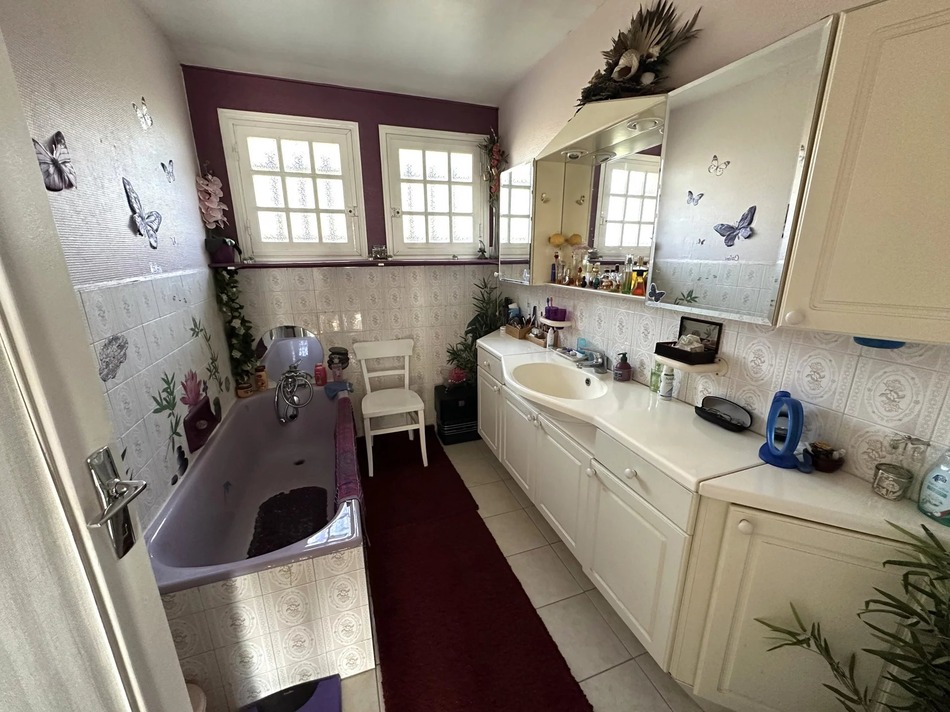 On the ground floor, you will find a bright, dual-aspect living room of approximately 40 m², a fitted kitchen with an adjoining pantry providing direct access to the garden and rear terrace—perfect for enjoying long summer days. This level also includes two bedrooms, a shower room, a WC and a laundry room.