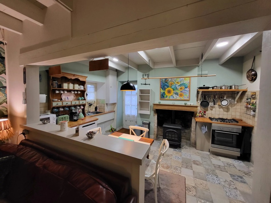 Flexible accommodation is arranged around a pretty internal courtyard (with barn) and consists of a two bedroom/two bathroom gite, a king size chambre d'hôte with bathroom and owners living quarters.