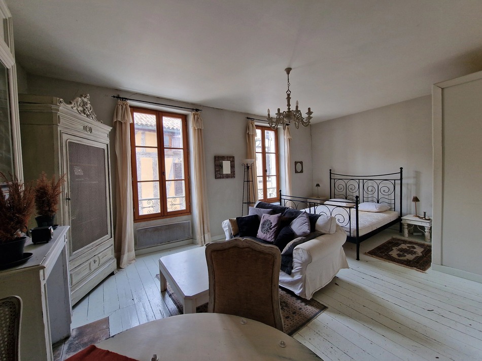 Located a few metres from the central square of this historic bastide town, this is an opportunity to buy an income producing property, or use it as a commercial workspace with accommodation above.
