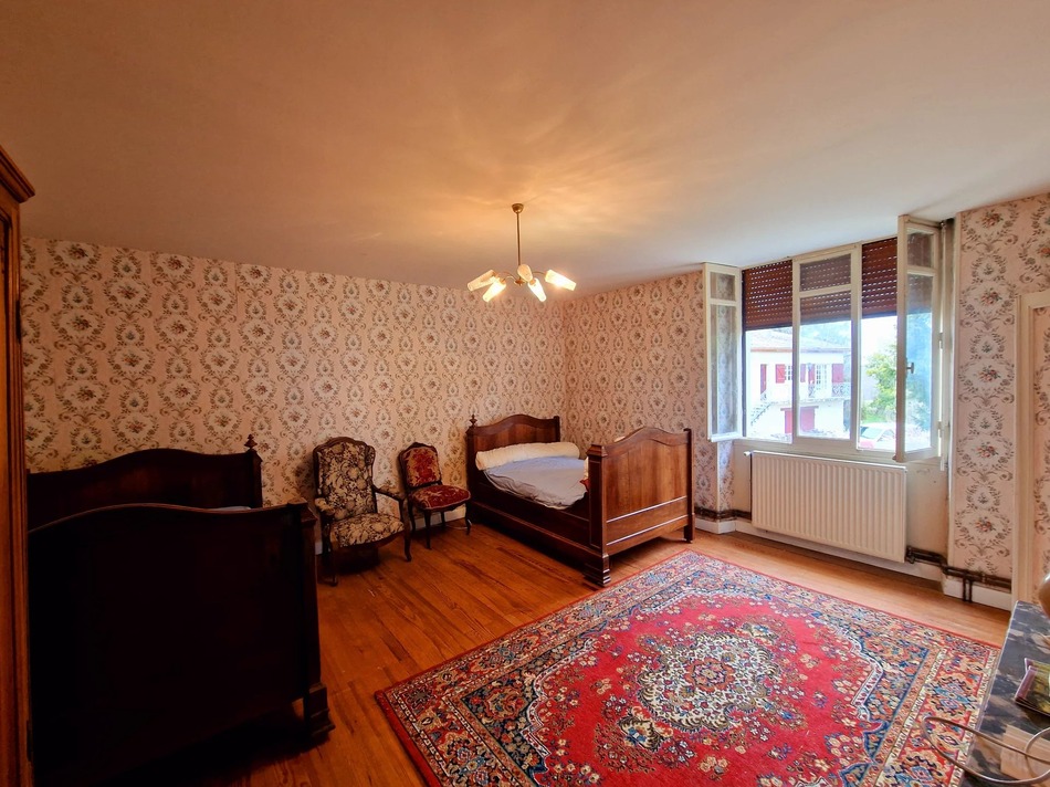 The main house features generously sized living spaces with high ceilings, original architectural details, and a warm, inviting atmosphere. Upstairs, five spacious bedrooms and additional rooms provide ample accommodation, while an adjoining barn, formerly a wine storehouse, adds to the property’s historic character.