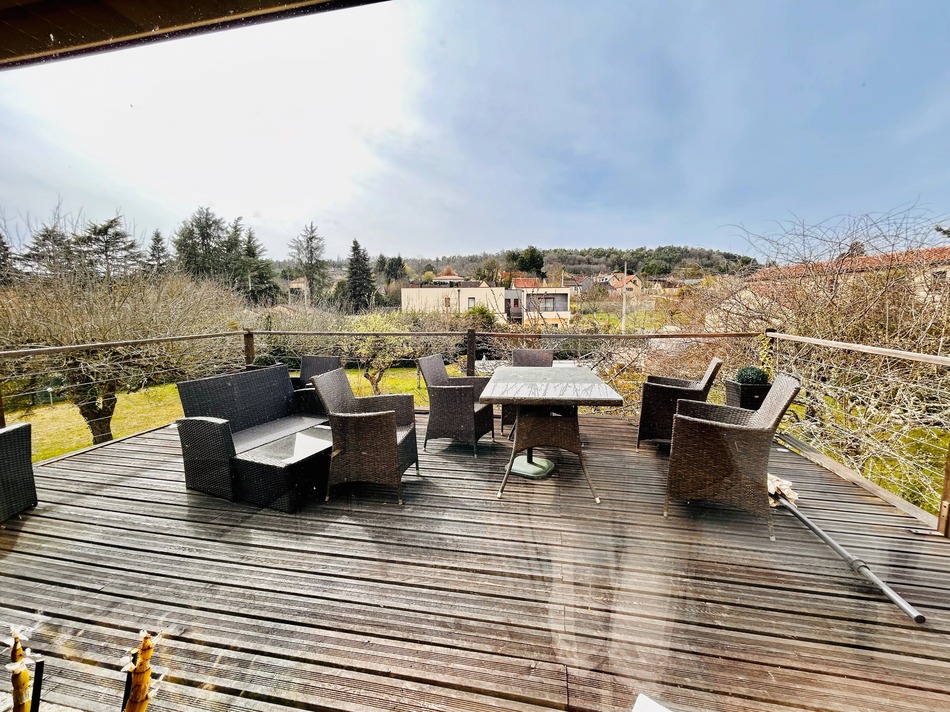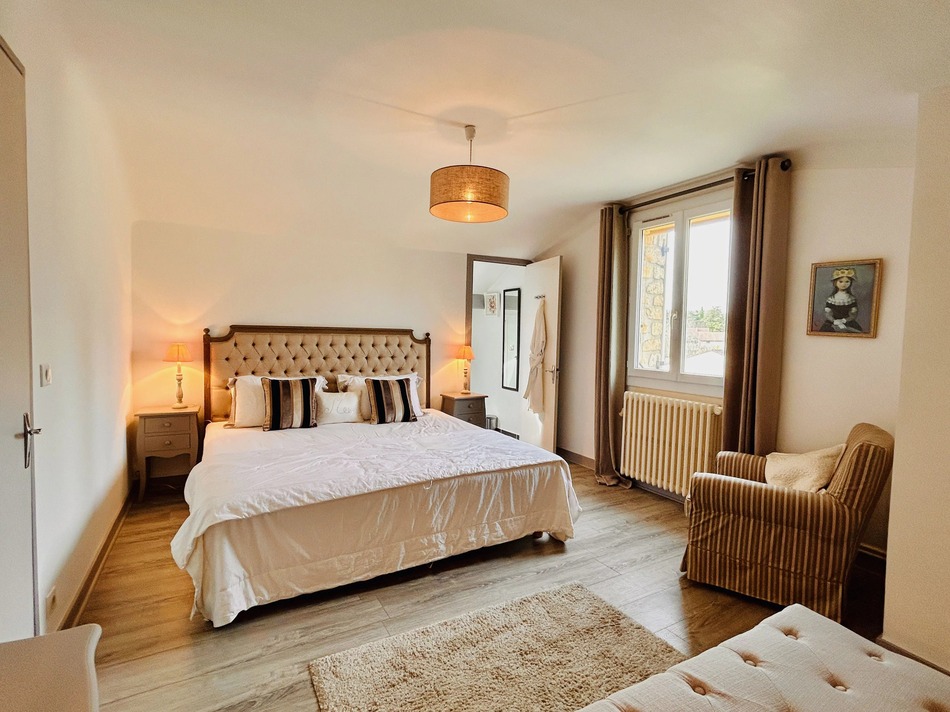 The garden is designed for low maintenance, with mature trees, a wide deck, an outbuilding and a swimming pool. A straightforward move-in-ready home with guest accommodation and pool, within walking distance of central Sarlat in the Dordogne.