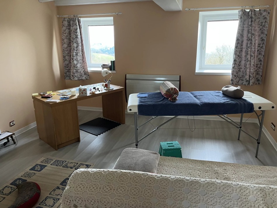 The other section served as a guest house (possible gite business - subject to necessary permissions), consists of a kitchen, a living room with exposed roof beams, terracotta tiles, and a open wood-burning stove. On this ground floor we also have a bedroom and shower. Upstairs we have three bedrooms, each with its own shower room or bathroom and toilets, ready to welcome guests, your family, or your friends (possible gite business - subject to necessary permissions). This house has a cellar with a well and good storage space.