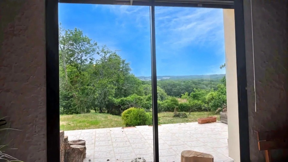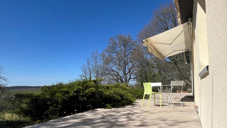 Beautiful 75 m² terrace with exceptional views over the surrounding countryside. Quiet location on 3845 m² of wooded grounds.