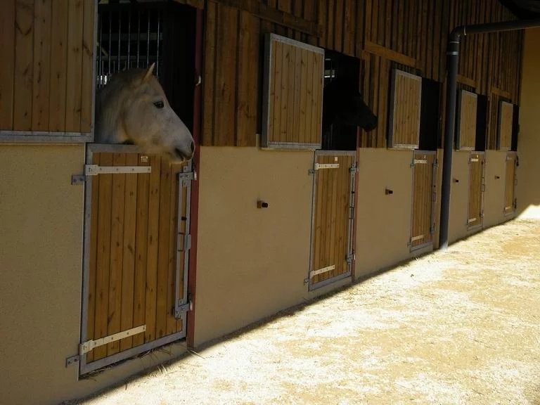 The estate features a 40x30m sand arena, a 66x20m covered riding arena and a 70x50m grass arena. The stables have 14 boxes (3.5mx3.5m) and offer optimum comfort for the horses. In addition, the infrastructure is well maintained, ensuring safety and serenity for both animals and owners. Offices and a club house are also on site.