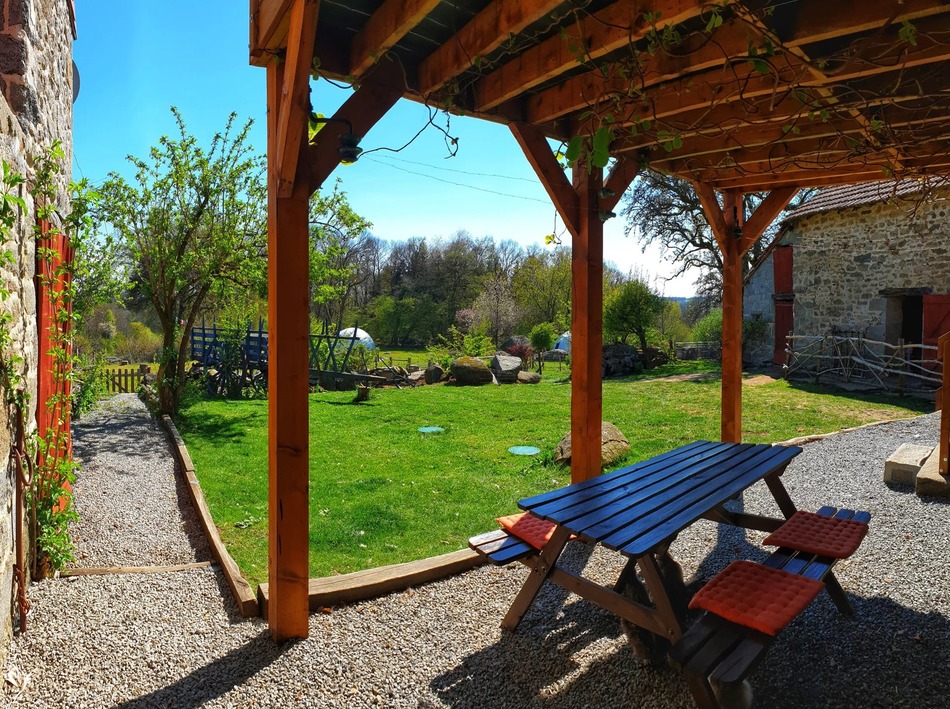 This is a beautiful, south-facing property in a small hamlet off the main road, just a short drive from the nearest rural town and within a quarter of an hour of the regional capital. Surrounded by the rolling ‘Creusois’ countryside with its rivers and lakes, it is an ideal place for that peaceful life you are looking for in France, but also offers the chance to continue (with renewed permits etc) the business with a very pretty gite and the two geodesic domes of 25m2 and 50m2. Each Dome has its own hot tub, and are private from each other.