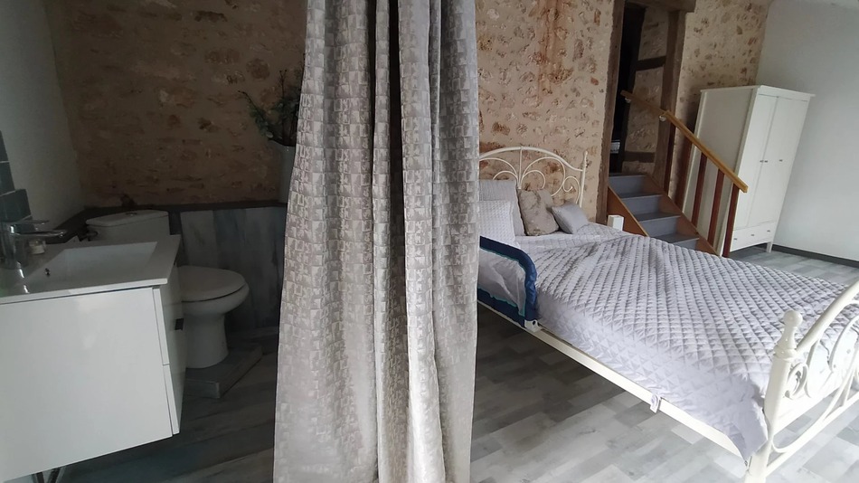 EXCLUSIVE TO ! This renovated village house equidistant between the larger village of Mareuil en Périgord and the town of Nontron, comprises on the ground floor of a large entrance hall, kitchen with walk-in larder, snug room, large sitting room with woodburner, wet room and WC.