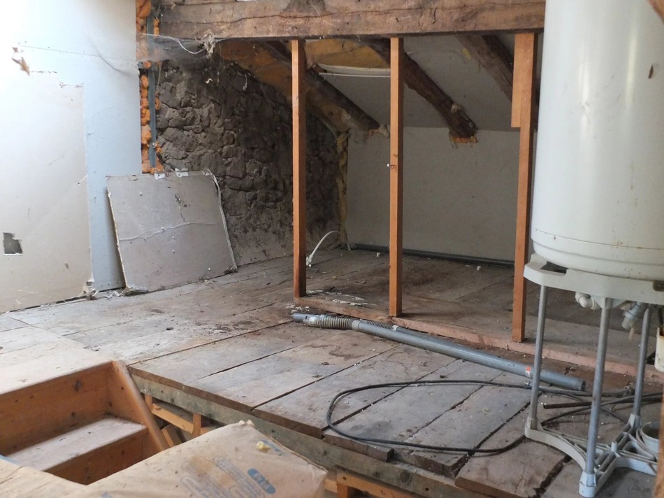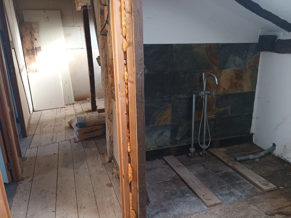 First Floor: 2 double bedrooms and bathroom (no fixures fitted) Hot water tank and potential storage area.