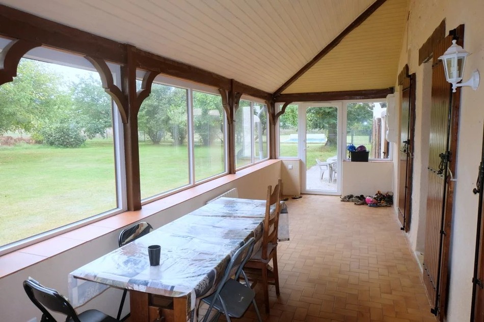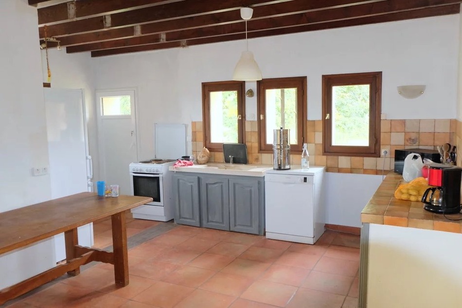 Discover the perfect family retreat in this substantial countryside home. The property features a large lounge with a characterful tiled floor, exposed wood beams, and a warming wood stove fireplace, creating a welcoming atmosphere. Adjacent is a well-equipped dining kitchen with ample fitted storage.