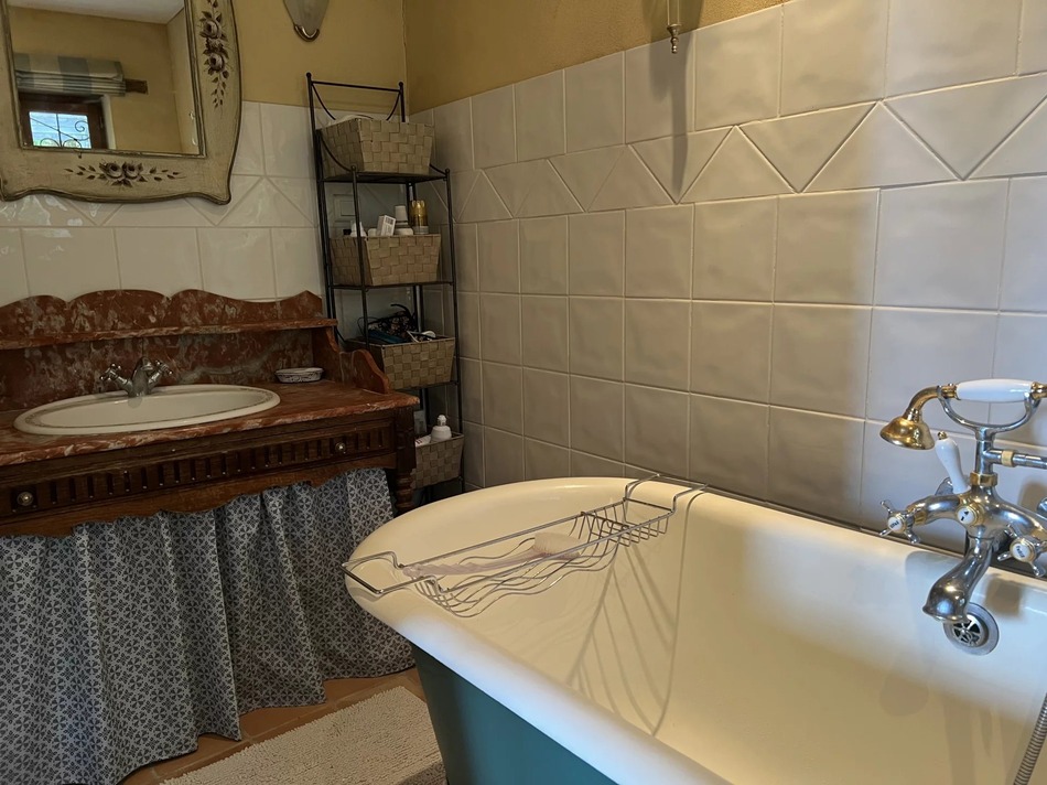 Situated in a small hamlet of equally beautiful homes, the current owners have tastefully renovated the house. It offers three large reception rooms, each with a fireplace and wood-burner; a separate kitchen with access to the large outdoor covered eating and entertaining area and a spacious ground floor bedroom with bathroom and walk in wardrobe. Upstairs are three bedrooms, and two shower-rooms.