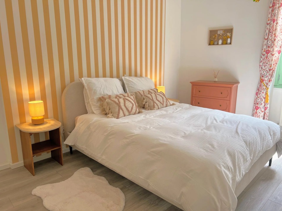 On the ground floor, a bright, welcoming entrance hall provides interior access to the garage and leads into a stunning living space that has been tastefully renovated to highlight its original features—exposed beams, stone walls and an attractive fireplace. The stylish modern kitchen is fully fitted with integrated appliances and opens via French doors to the terrace and garden beyond, planted with roses and shrubs and with possibility for a small pool. A covered summer kitchen completes the outdoor living space. Off the kitchen, there is a WC and a practical storage room.