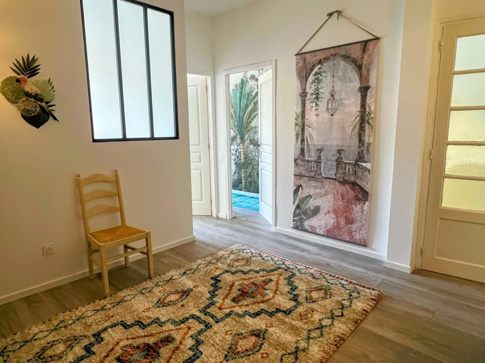 Upstairs, a large landing gives access to two spacious double bedrooms sharing a Jack-and-Jill shower room, as well as a third bedroom with a generous en suite bathroom and direct access to a first floor terrace overlooking the garden. This level also includes a laundry room, a meditation room, an office and a walk-in dressing room.