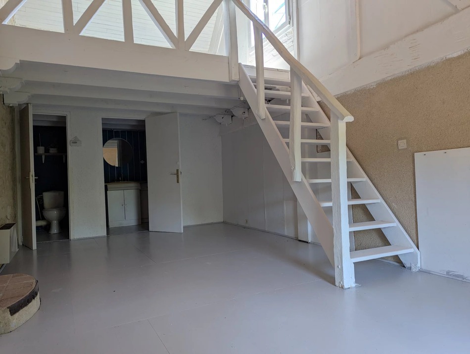 The ground floor features a bright and spacious open-plan living area (33m²) with original tomettes tiles and beams. There's also a dining room, which could easily be converted into a downstairs bedroom, two entrance halls, a shower room, and a separate WC.