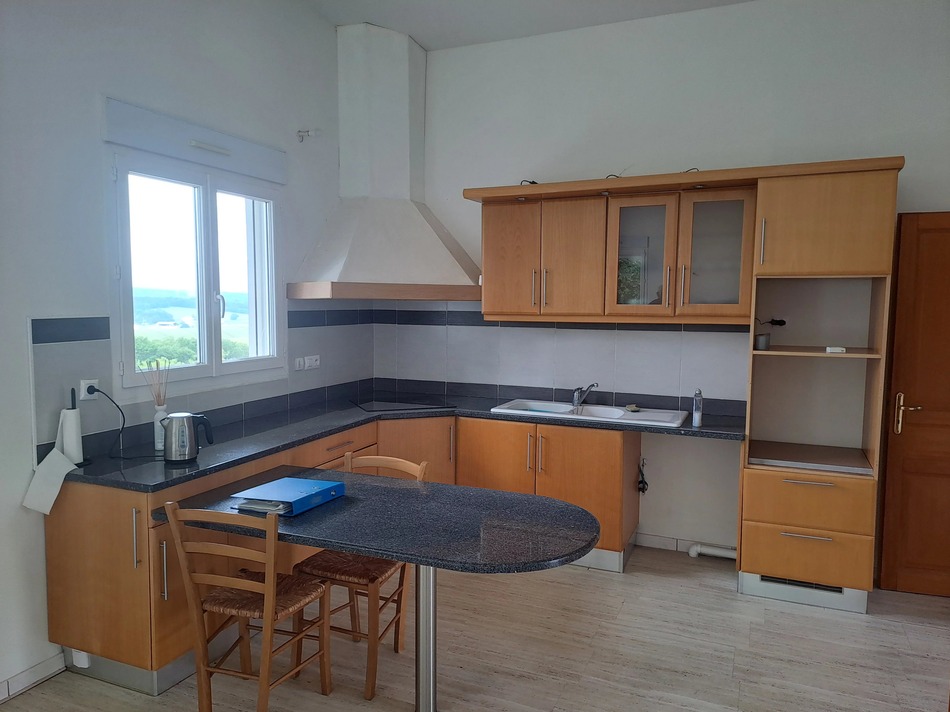 This living space gives access to a south-facing 22 m² covered terrace, ideal for enjoying the peace and quiet of the surrounding countryside.