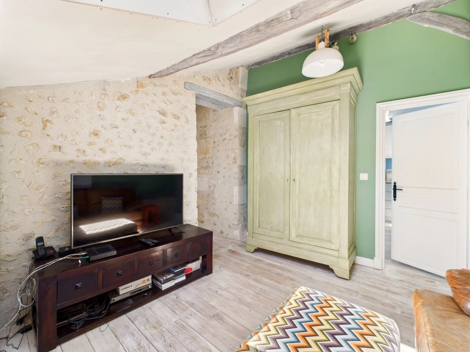 A standout feature of this property is the option for an independent living quarter, perfect for guests, extended family, or even rental potential (possible gite - subject to necessary permissions). This charming space includes a lovely double bedroom with an original stone fireplace, a spacious bathroom with both bathtub and shower, and a cozy upper-level room, ideal as a home office, studio, or reading nook.