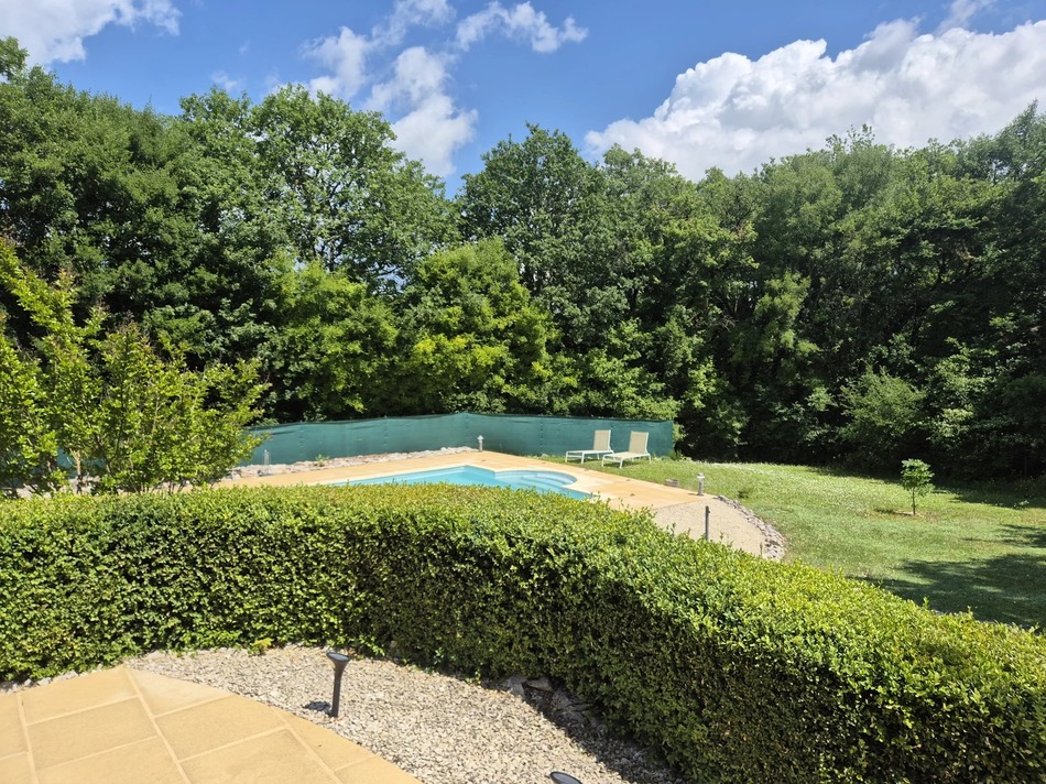 Beautiful contemporary house, approx. 135 m², in a quiet location in a small hamlet of around ten houses, a few kilometres from Cahors in the Lot department. The wooded grounds of around 2,400 m² offer a holiday feel, with oak trees, irises, box hedges and a well-exposed 10 x 5m swimming pool.