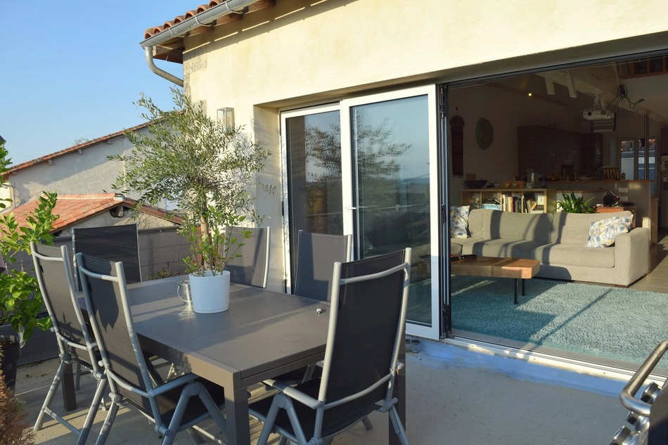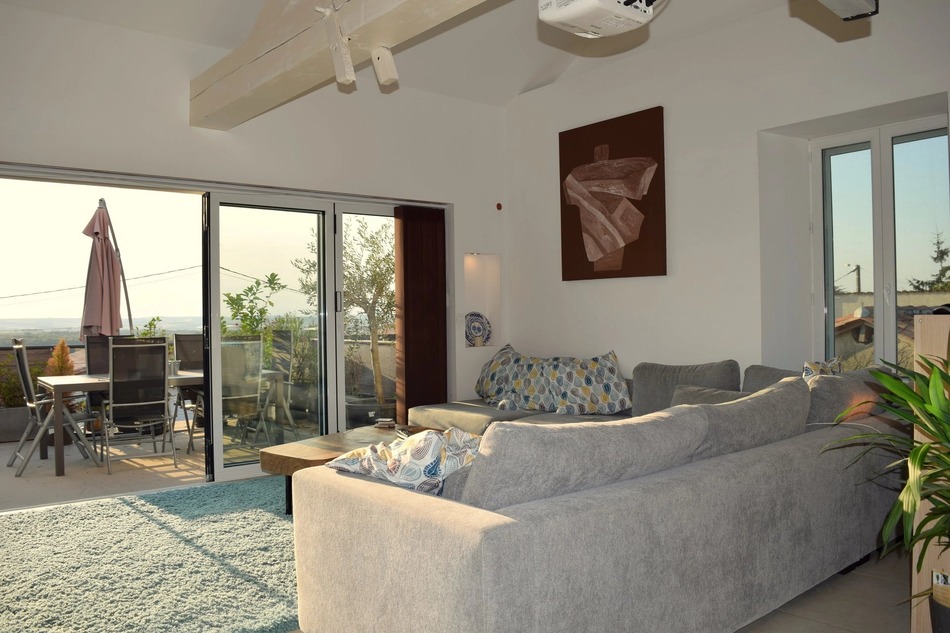 The well presented accommodation has been designed to take advantage of the amazing far reaching views thus offering an open plan kitchen-dining-living room leading directly to the first floor terrace. A particular feature of this property are the bi-folding doors that open on to the terrace, this having space for table and chairs, bbq and a number of potted plants, etc.