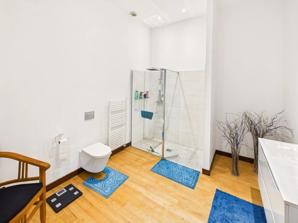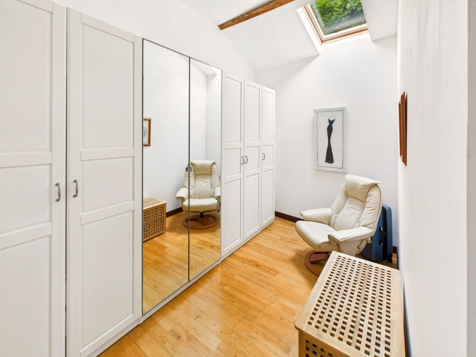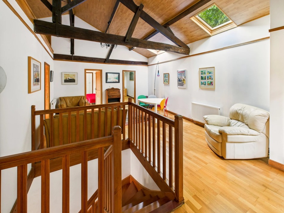 The first floor is reached by ascending the bespoke wooden staircase, as you reach the top of the stairs you are greeted by a large landing area with seating areas and light flowing in from the Velux windows. You will find three of the five bedrooms off this central area alongside an office/study and access to the rear garden via a single door. The additional two bedrooms and family bathroom with separate shower are located down a corridor to the right hand side of the landing. The master bedroom has a very large shower room to one side and a dressing room to the other.