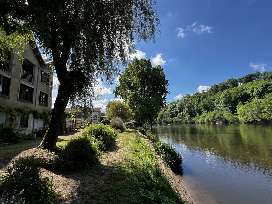 The estate includes a large tannerie building currently used as a residence with two bedrooms, as well as two additional self-contained units as guest accommodation: one with a single bedroom, lounge and kitchen and another with lounge, kitchen and three bedrooms. The property enjoys direct access to the river — ideal for leisure activities such as fishing, canoeing, or water sports.