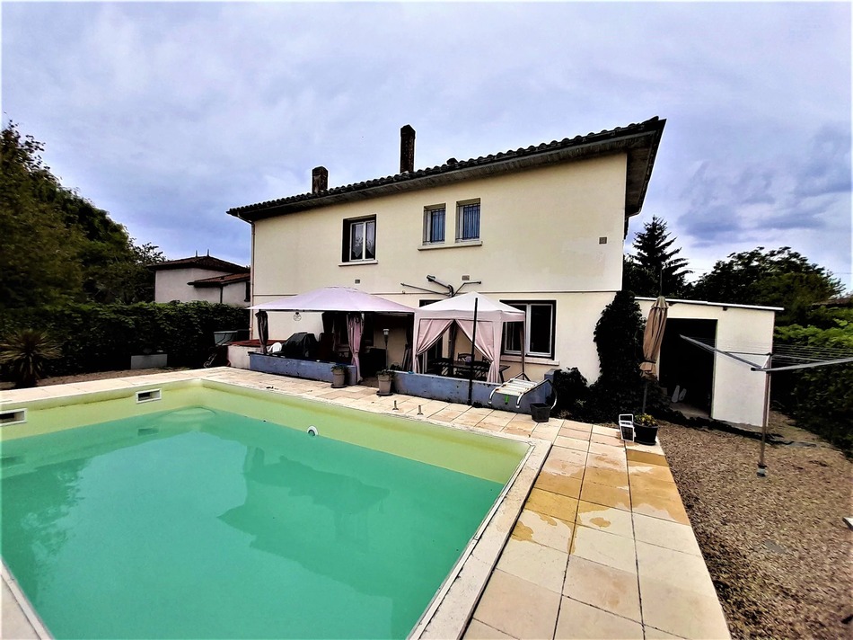 A Pretty village house that has flexible living accommodation. On the first floor there is an L-shaped living/dining room, a separate kitchen, a double bedroom with study area and a shower room. The ground floor could be a separate 2 bedroom apartment (subject to necessary permissions) with a living/dining room, 2 bedrooms, a shower room and kitchen with french doors leading out to the terrace and inground swimming pool.