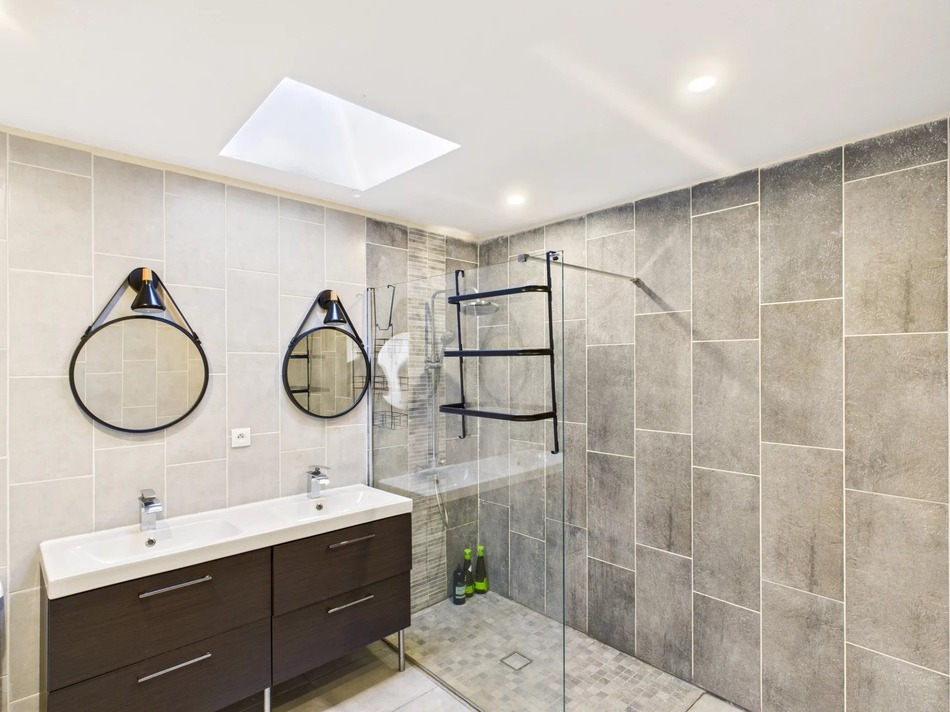 Outside, the newly installed heated pool enjoys a prime spot in the garden, with a large area for sun loungers. The terrace and pergola provide yet another space for socializing or simply sitting quietly, eyes closed, soaking in the sunlight.