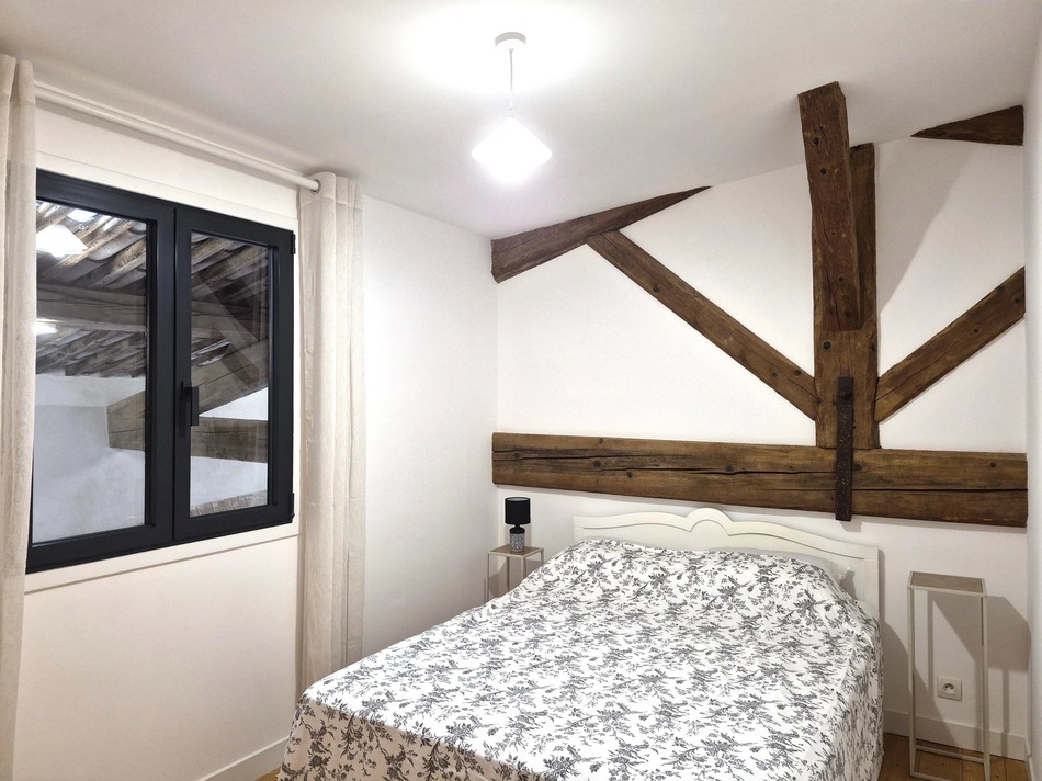 Beautifully renovated, retaining its original character. The spacious, light-filled living area features large sliding windows, offering a lovely view of the inner courtyard. Exposed beams and authentic materials combine with contemporary comforts for a harmonious result.
