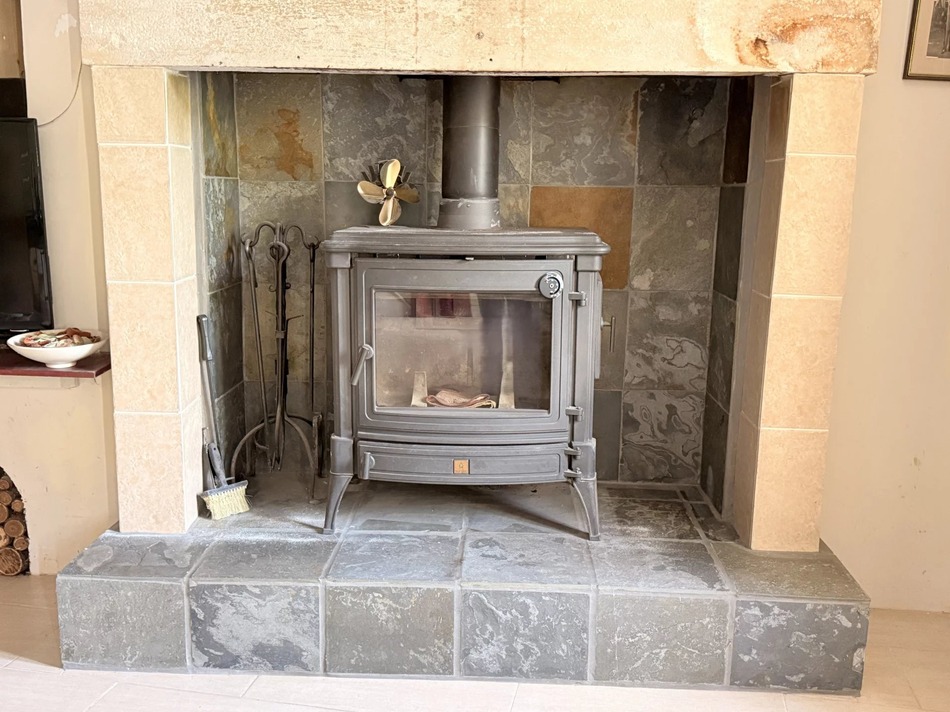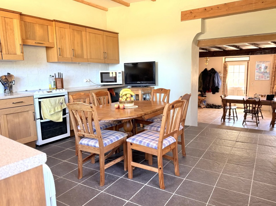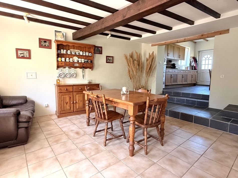Set in a quiet hamlet surrounded by rolling countryside, the home welcomes you into a bright and versatile dining room, from here, you step into a generous lounge with a cosy wood burner — a perfect space for relaxing all year round.